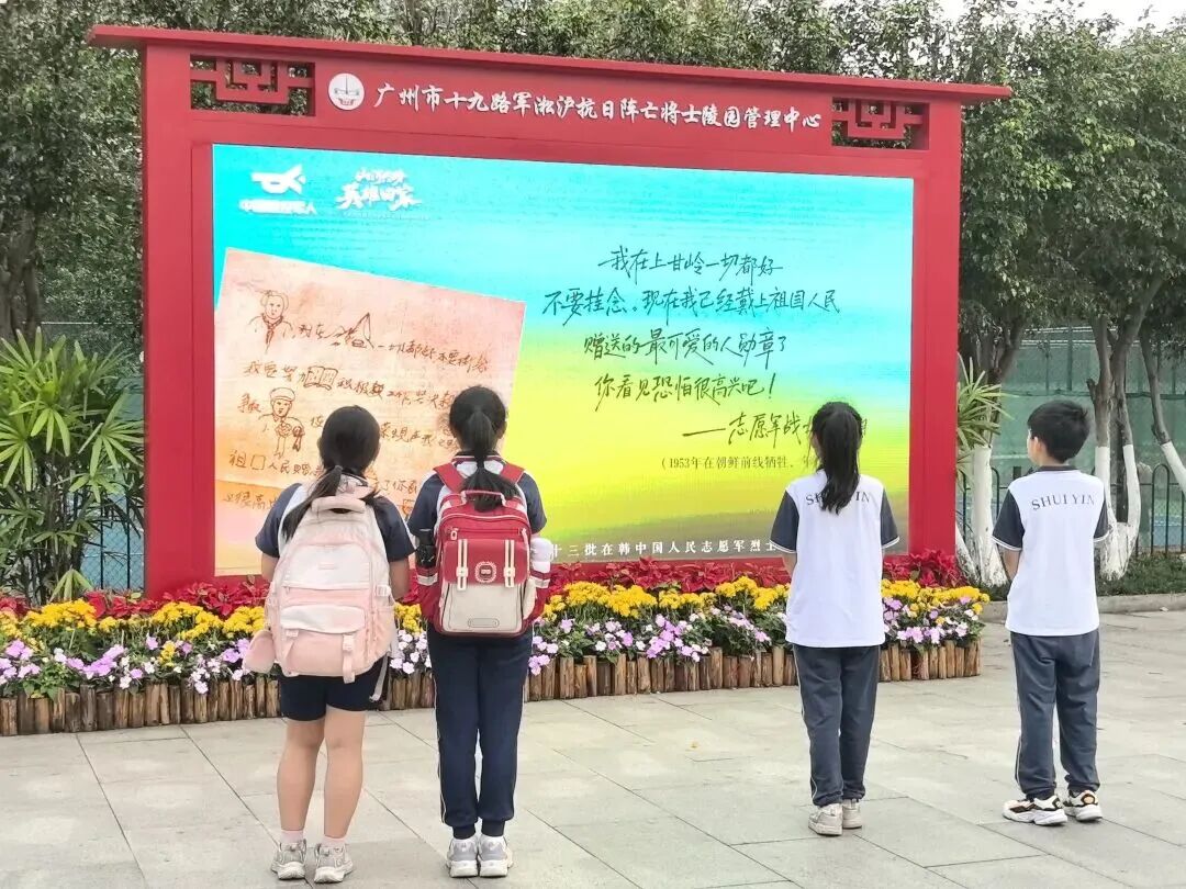 广州市退役军人事务局联动广州起义烈士陵园、广州十九路军淞沪抗日阵亡将士陵园管理中心、广州市黄花岗公园开展线上线下相结合的纪念活动,邀请市民通过献花、留言等方式表达对志愿军烈士的深切缅怀,并组织三个陵园持续开展“点亮行动”,在户外广场大屏等区域LED显示屏高频次滚动播放主题宣传内容,点亮志愿军忠烈的回家路,以崇高敬意接迎志愿军忠烈回家!